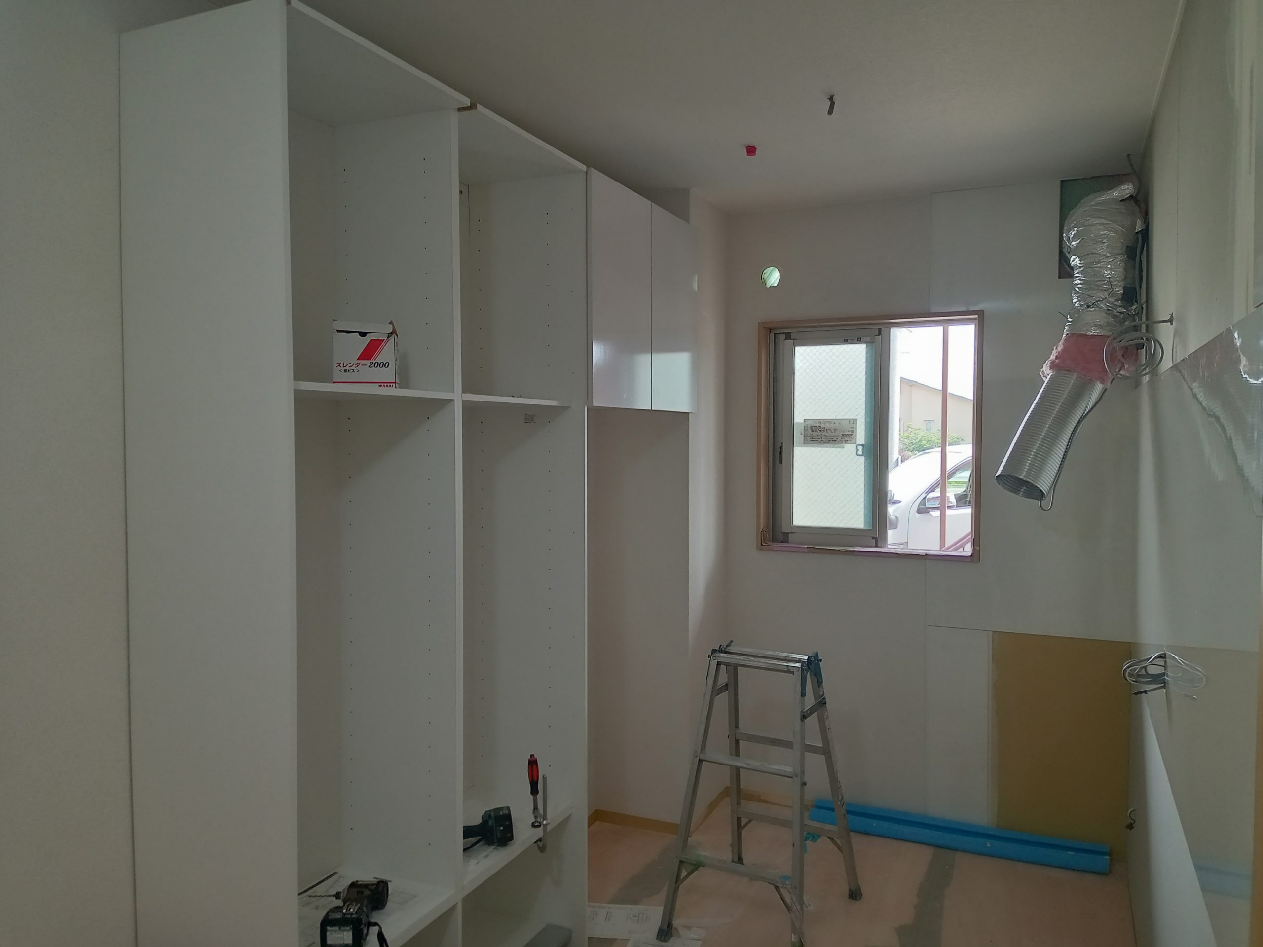 クロス工事が終わった個所から棚や造作家具を取り付けていきます