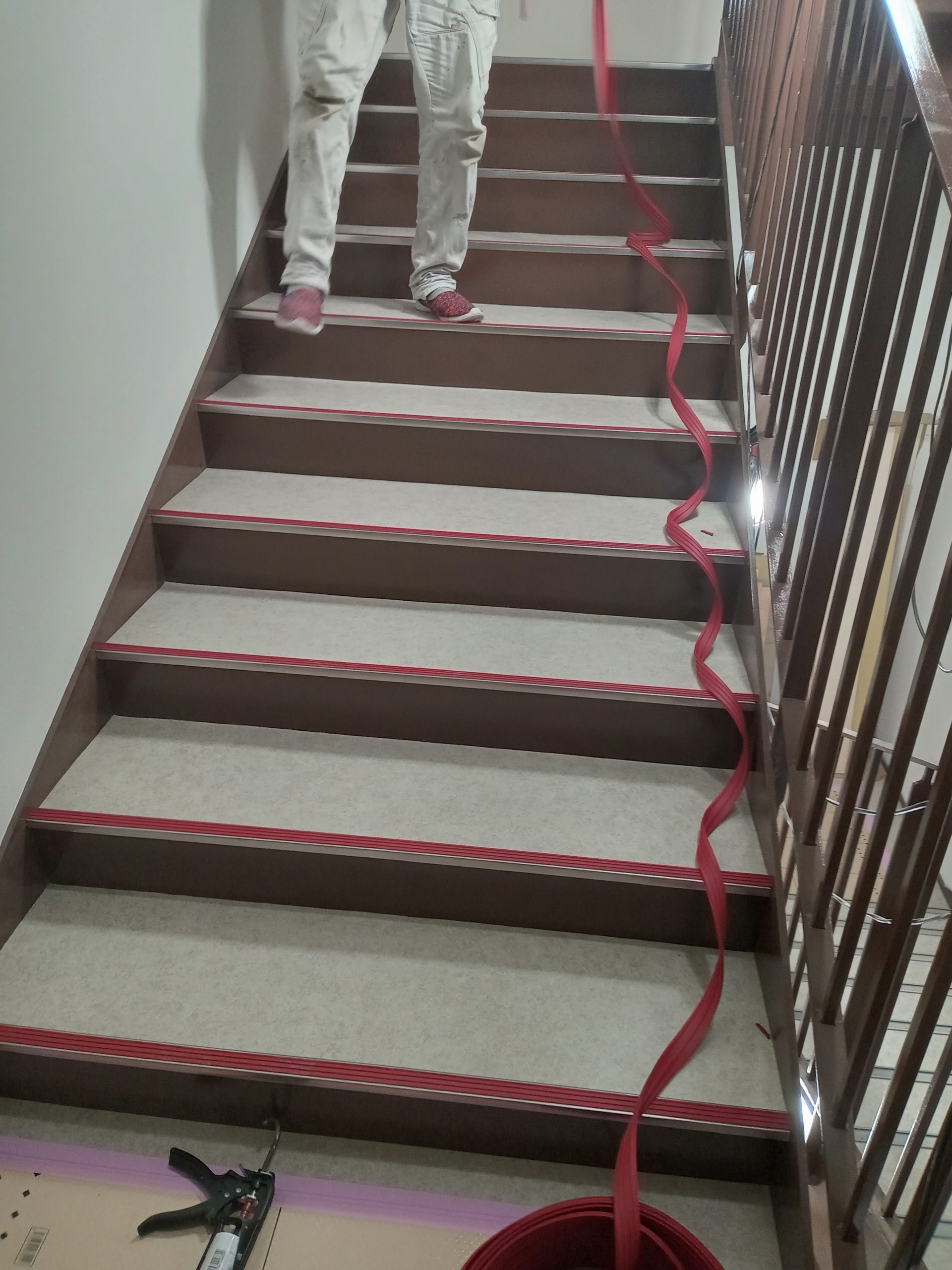 階段の踏面(ふみづら)の奥行きも広めにし、段鼻は、分かりやすいように濃い目の